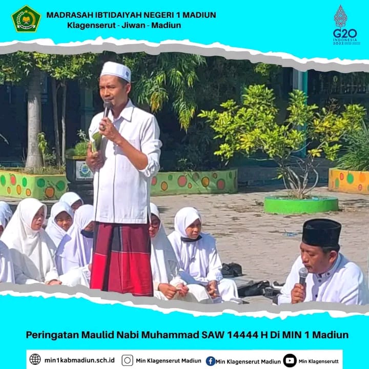 Madrasah Ibtidaiyah Negeri 1 Madiun melaksanakan peringatan Maulid Nabi Muhammad Saw, Jum’att (07/09). Kegiatan memperingati Maulid Nabi Muhammad Saw diikuti seluruh siswa, guru dan karyawan MIN 1 Madiun.