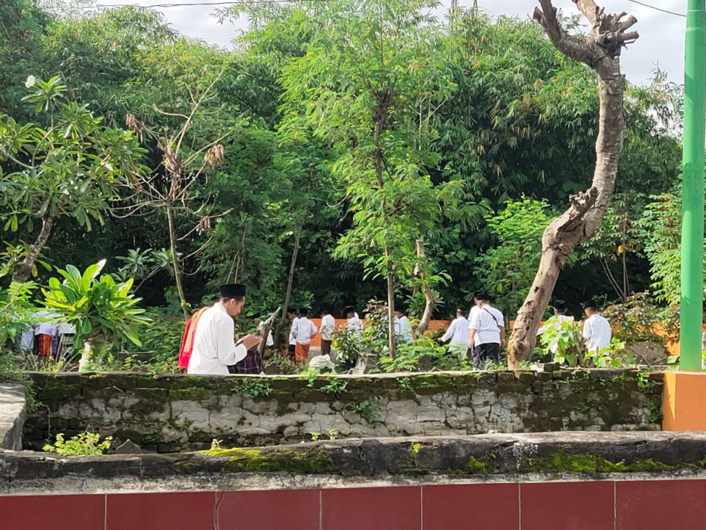 Kegiatan diawali dengan do’a bersama di halaman madrasah. Kegiatan dilanjutkan di makam dengan membaca surah Yasin dan tahlil. Setelah pembacaan tahlil, siswa secara bergantian melaksanakan tabur bunga di makam para pendiri madrasah.